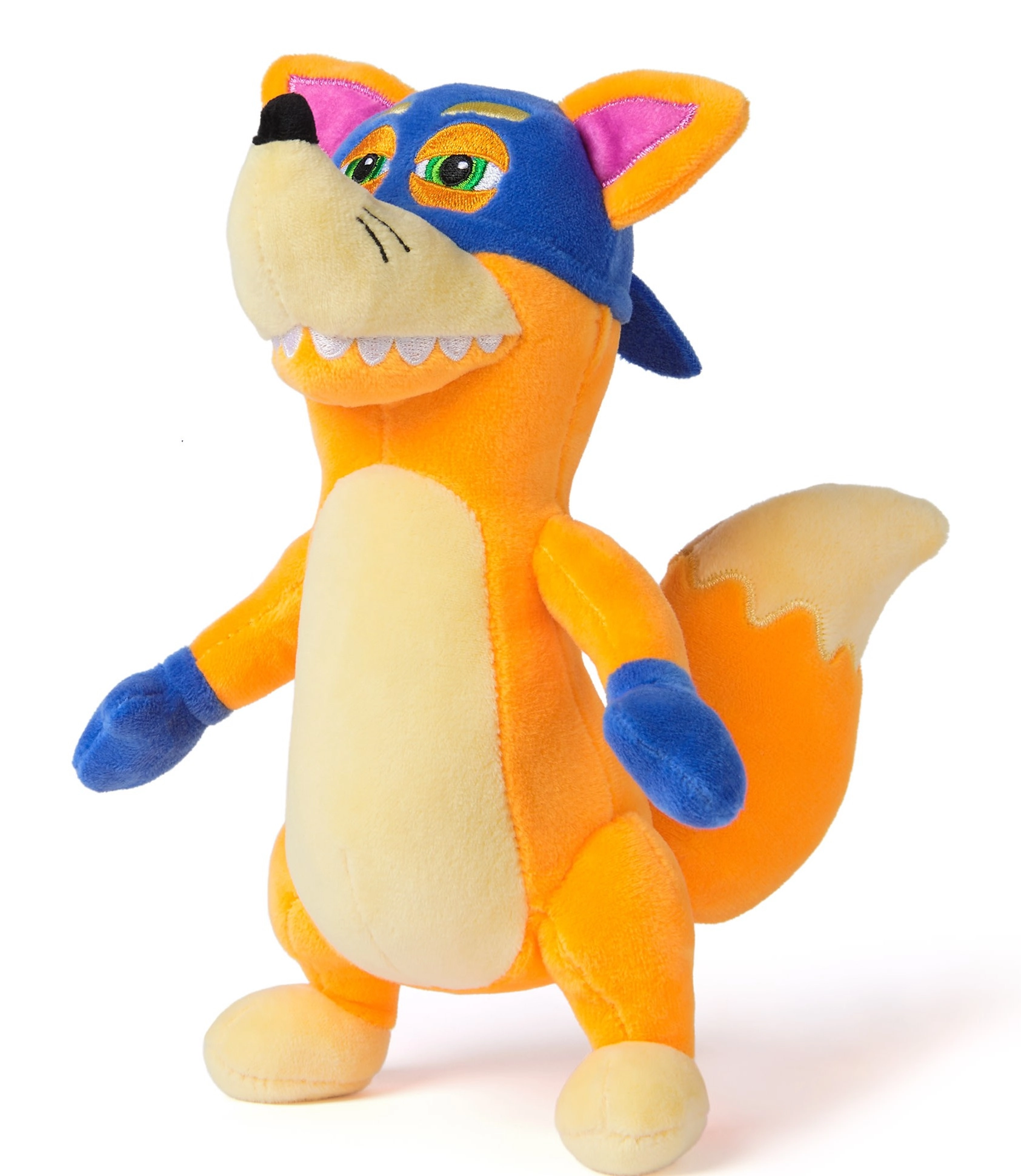 Vidd haza a rókát, Swipert, a híres „csínytévőt” a Dóra, a felfedező sorozatból. Az ikonikus kék maszkot és kesztyűt viselő plüssfigura puha felületű, hímzett szemekkel és fogakkal, mindennapos ölelgetésre tervezve.