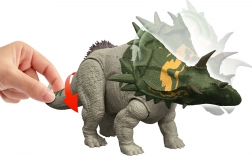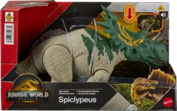 A valósághű Spiclypeus figura egy impozáns ragadozót ábrázol izmos, atletikus testfelépítéssel és részletes, tüskés páncélzattal. A szürkészöld színezés enyhe fénnyel és a tapintható pikkelytextúra filmszerű megjelenést ad, így tökéletes darab minden JURASSIC WORLD rajongó gyűjteményébe.