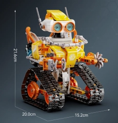 A vezérlés intuitív – válasszon a 2,4 GHz-es RC távirányító (kb. 25 m hatótáv) vagy a Bluetooth alkalmazás (Android/iOS) között, mely módokat kínál: távirányítás, Scratch programozás, giroszkópos irányítás és útvonalrajzolás. Ez a STEM készlet támogatja a finommotorikát, a türelmet és az együttműködést az építés során.