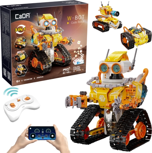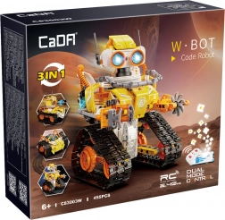A CaDA W.Bot építőkészlet okos szórakozást kínál gyerekeknek és felnőtteknek. A 3 az 1-ben moduláris koncepció egyetlen készletből három különböző modell megépítését teszi lehetővé, a lánctalpas futóműnek, a forgatható fejnek és a 360°-os működő eszköznek/rotornak köszönhetően pedig egyenletes mozgást és valósághű akciókat élvezhet. A beépített fények látványos megjelenést adnak a modellnek.