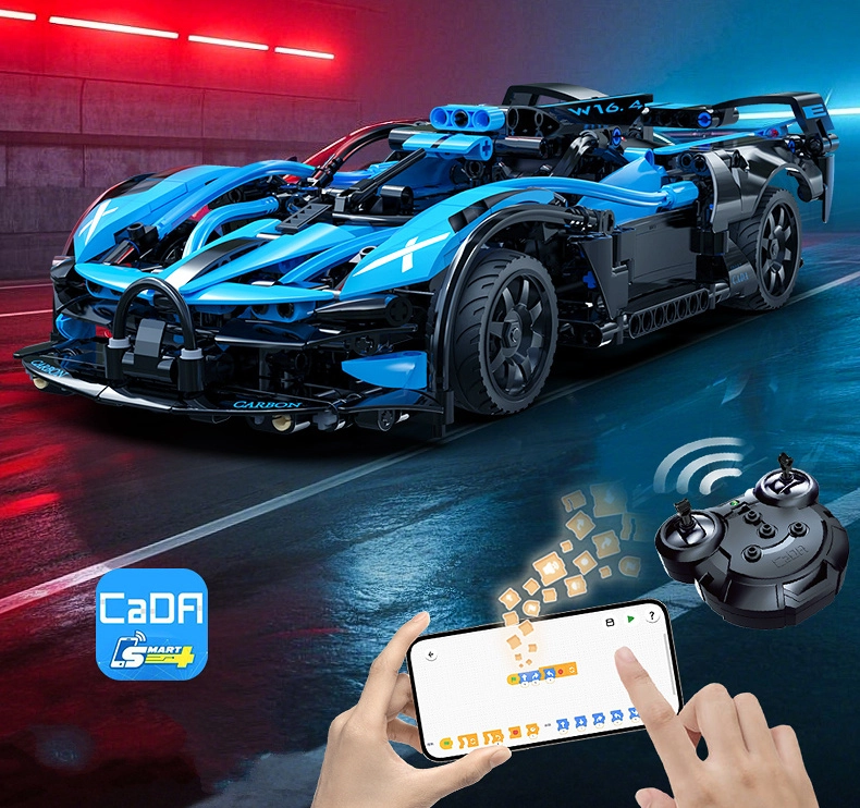 A dupla vezérlésnek köszönhetően eldöntheted, hogy a kb. 25 m hatótávú és akár 5,5 km/h sebességet kínáló 2,4 GHz-es távirányítót, vagy a mobilalkalmazást (Android/iOS) használod több móddal, beleértve a giroszkópot és az útvonalrajzolást. A nyomat matricák helyett, az aerodinamikus vonalak és a más CaDA készletekkel kompatibilis minőségi elemek a modellt és a játékélményt is magasabb szintre emelik.