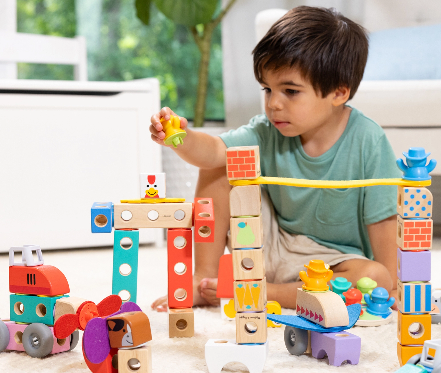 Az építőkészlet fejleszti a kulcskészségeket: finommotorika, kéz–szem koordináció, kreativitás és logikus gondolkodás. A gyerekek rakosgathatnak, kapcsolhatnak, forgathatnak és guríthatnak a kész alkotásokkal. A minőségi, FSC tanúsítvánnyal rendelkező fa és a strapabíró kivitel hosszú élettartamot biztosít a mindennapos játék során is.