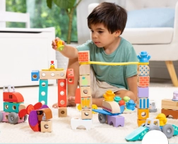 A változatos formáknak és az okos illesztéseknek köszönhetően a gyerekek fejlesztik a finommotorikát, a türelmet és a kreatív gondolkodást. A készlet ideális a szabad játékhoz, a történetmeséléshez és az első építési próbálkozásokhoz. A minőségi, FSC fa és a tartós kivitel hosszú élettartamot és biztonságot garantál.