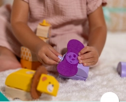 A masszív, sima kockák biztonságosak és könnyen megfoghatók. Már 2 éves kortól támogatják a finommotorika és a kéz–szem koordináció fejlődését.