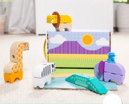 A gyerekek könnyedén összeállíthatják és variálhatják az állatok részeit (oroszlán, zebra, zsiráf, krokodil, víziló), egyedi figurákat alkotva, amelyek ösztönzik a képzelőerőt és a történetmesélést.
