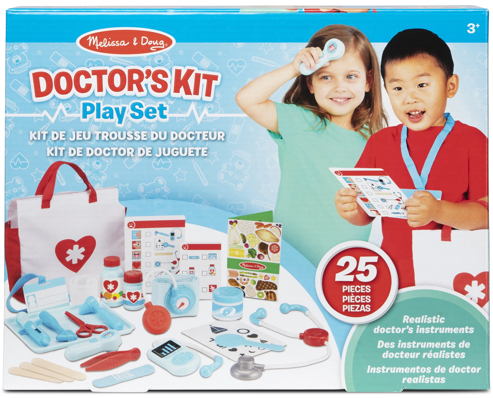 - Valósághű orvosos játék – sztetoszkóp, hőmérő, fecskendő, reflexkalapács és egyebek.