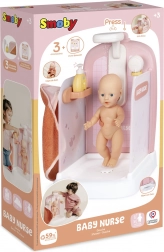 A szett 40 cm-ig terjedő babákhoz készült, és tárolóhelyet kínál a kiegészítőknek, a zuhanyrózsának és a flakonnak. A SMOBY márka minőségi kivitelezése biztonságos és hosszan tartó szórakozást garantál. Franciaországban készült, ajándékcsomagolásban szállítva – ideális ajándék a kis gondoskodóknak.