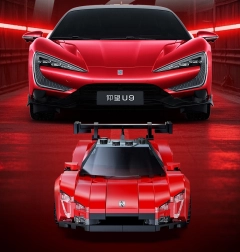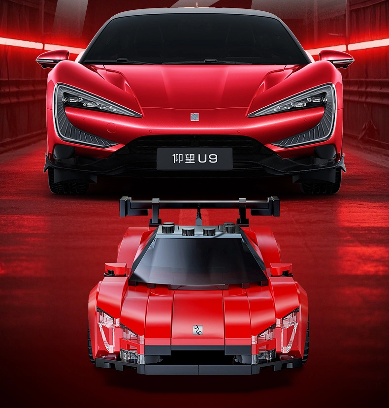 A piros színű, hűen kidolgozott karosszéria, a részletes felnik és a nagy hátsó szárny feltűnő kiállítási darabbá teszik a YANGWANG U9 modellt.