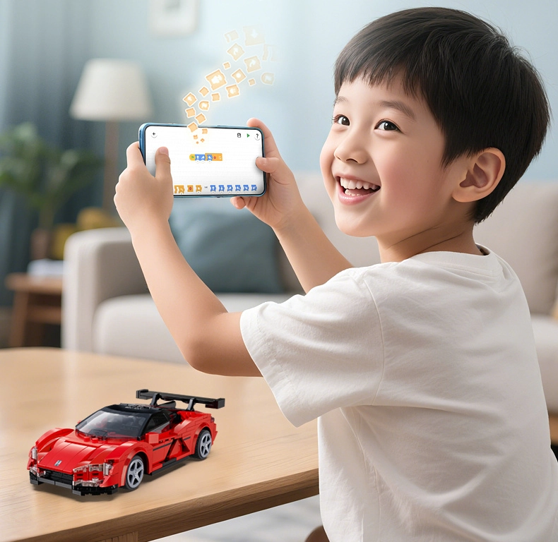 A modell legfeljebb 3,8 km/h sebességgel halad, és a kettős vezérlési módnak köszönhetően választhatsz a mellékelt 2,4 GHz-es távirányító és a telefonos alkalmazás több okos módja között. Remek választás 6 éves kortól azoknak, akik szeretik a technikát, a kreatív építést és a dinamikus játékot.