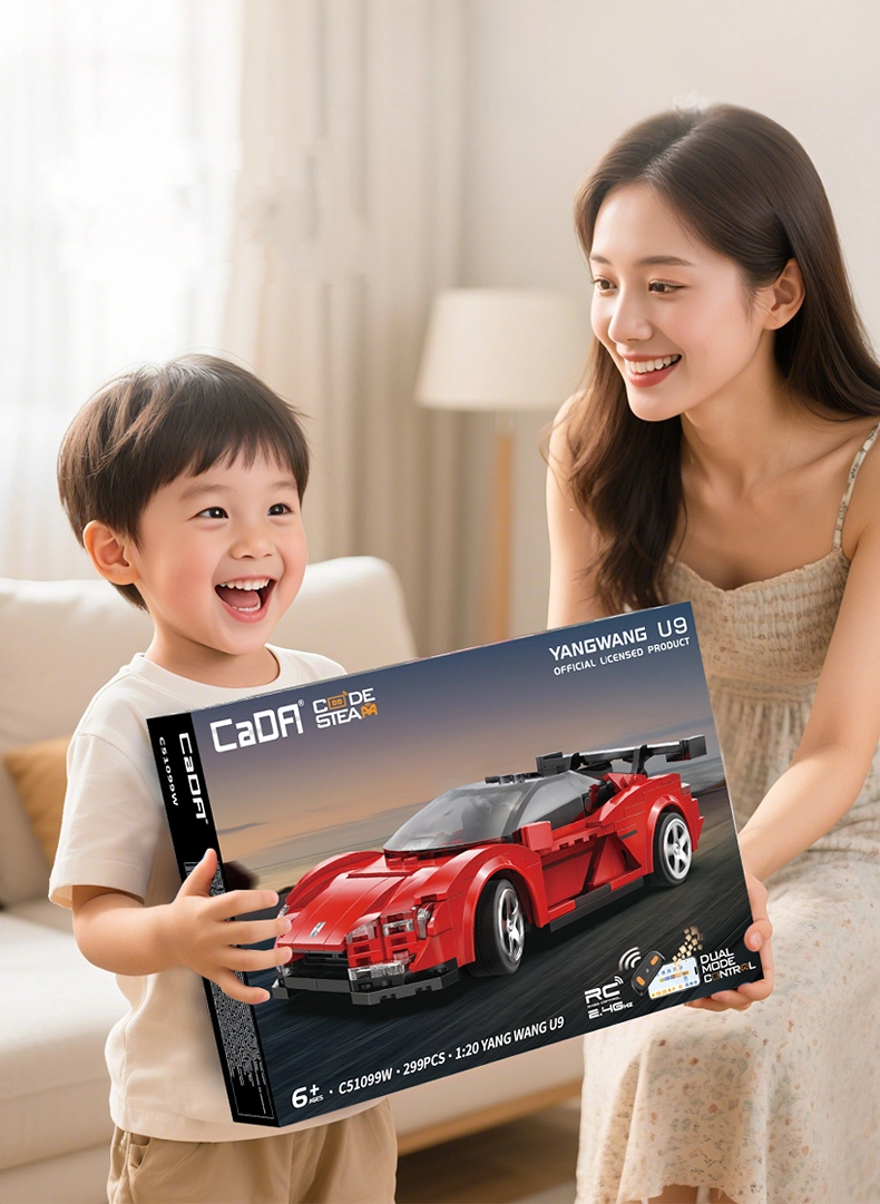 Építsd meg a valósághű YANGWANG U9 versenyautót a CaDA márkától, és irányítsd távirányítóval 2,4 GHz-es vezérlővel vagy Bluetooth alkalmazással. A 1:20 méretarányú, 299 darabból álló modell licencelt dizájnt, aerodinamikus formákat és akár 20 m hatótávot kínál. Ideális készlet kicsiknek és nagyoknak, akik rajonganak a gyors autókért és a technikai kihívásokért.