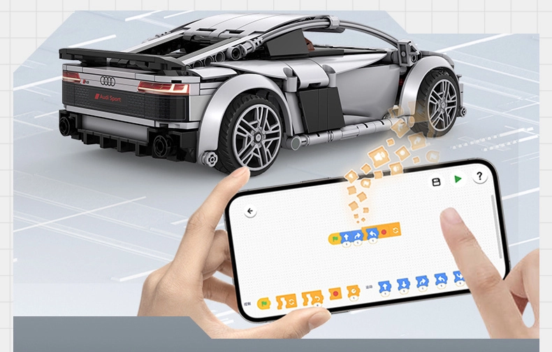 Építsd meg az ikonikus AUDI R8 szupersportautót 1:14 méretarányban 536 darabból, és élvezd a konstruktív szórakozást, valamint a távirányítású vezetést. A hivatalos licenccel rendelkező modell realista részletekkel, aerodinamikus dizájnnal, és 2,4 GHz-es vezérlővel vagy Bluetooth alkalmazással (négy móddal) irányítható.