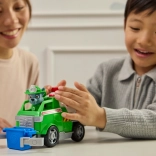 A zöld jármű simán gurul a sík felületeken. A gyerekek tologathatják és saját történeteket mesélhetnek a Mancs őrjárat világából.