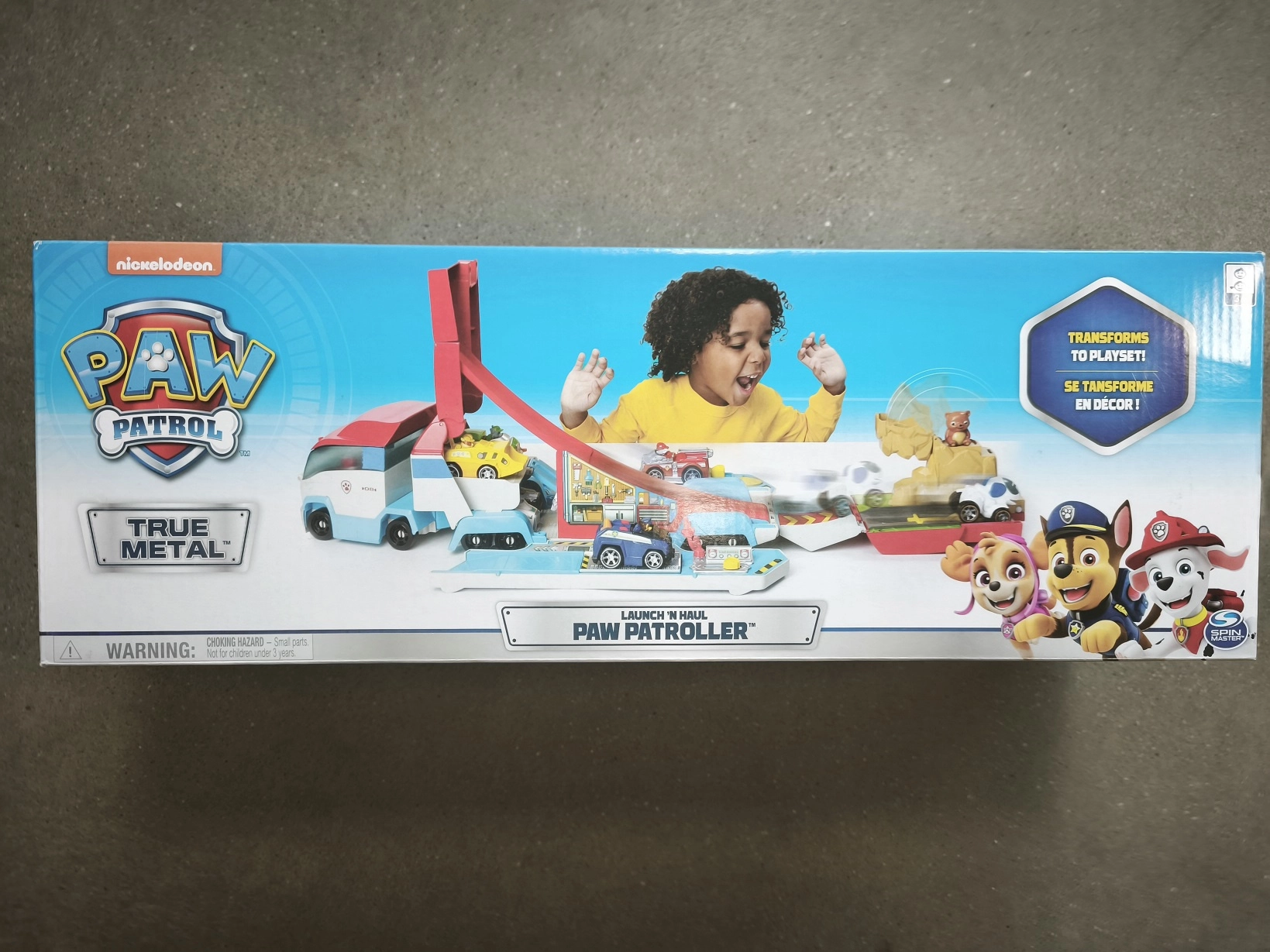 A Spin Master PAW PATROL sorozata által ihletett gyerek szett egy átalakuló 2 az 1-ben szállítót kínál fehér-kék-piros színben. A pótkocsi szétnyitás után nagy autókilövővé változik, különféle mentőakciók teljesítését teszi lehetővé, és akár 7 fémautót is befogad True Metal sorozatból (külön kaphatók). OUTLET – HIÁNYOS: hiányzik a Robo-kutya.