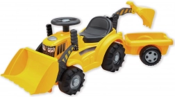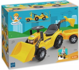 A ECOIFFIER márkájú sárga pótkocsis és cserélhető kanállal (bulldózer/kotró) felszerelt gyerek traktor remek lábbal hajtós jármű a legkisebbeknek. Ülést tárolórekesszel, forgó kerekeket és könnyű kanálkezelést kínál a kormány melletti fogantyúk segítségével. Ideális 12–36 hónapos gyermekeknek, és nagyszerű társ a játékhoz otthon és a kertben is.