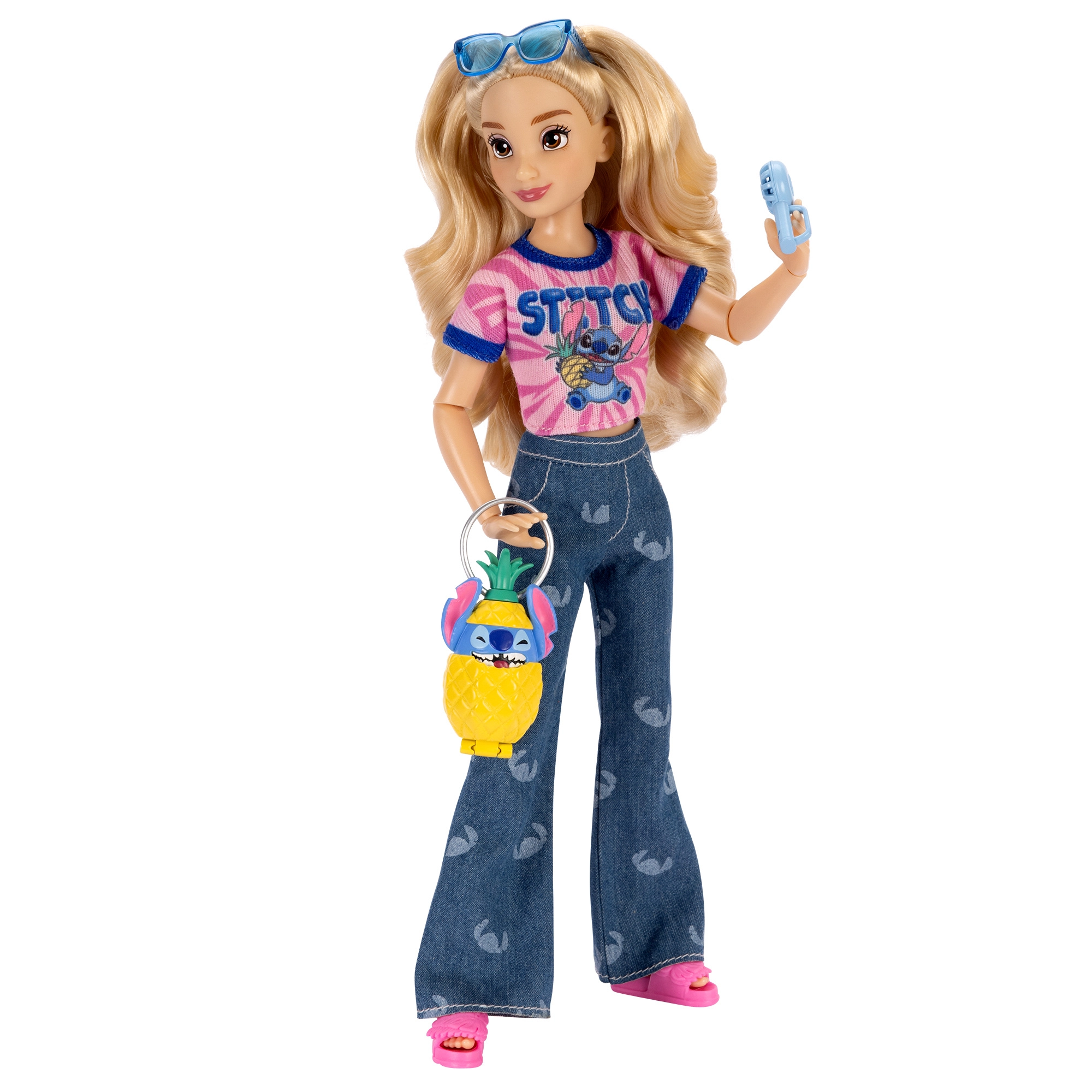 A csomag része egy tematikus kiegészítőkészlet a nyári lazításhoz – napszemüveg, telefon, kulacs, legyező, „lotion”, stílusos ananászos táska és további apróságok. Minden a STITCH megjelenéséhez hangolva, hogy az öltöztetés és a történetalkotás még szórakoztatóbb legyen.