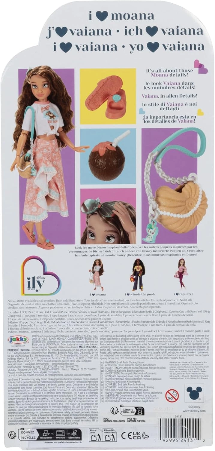 A Disney ILY 4EVER stílusos baba, amelyet MOANA inspirált, kb. 30 cm szórakozást kínál 13 mozgásponttal a valósághű pózokért. A csomag divatos kiegészítőket tartalmaz (táska, napszemüveg, telefon stb.), minőségi kidolgozással és részletgazdag, tengerparti hangulatú öltözékkel – ideális kreatív játékhoz és gyűjtőknek is.