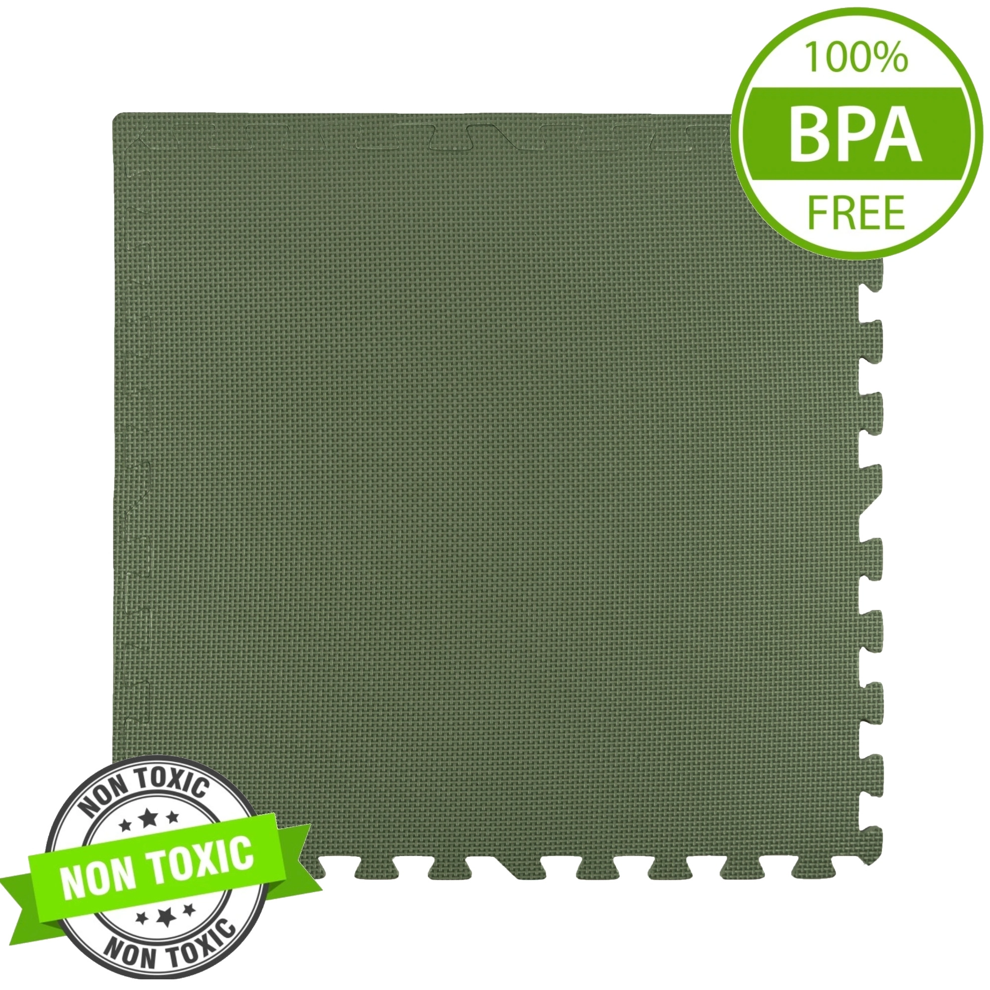 Puha és biztonságos EVA habszőnyeg khaki színben, amely véd a hidegtől és tompítja az eséseket, vízálló, könnyen tisztítható, és együtt nő a gyermekkel. A szett 3 nagy, 60 × 60 cm-es elemet és 6 szélszegélyt tartalmaz, amelyek nagyobb felületté vagy különböző formákká kapcsolhatók. Megfelel az EN 71 szabványnak és rendelkezik CE tanúsítvánnyal.