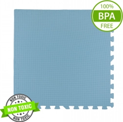 A HUMBI szőnyeg a gyermek számára biztonságos és kényelmes helyet teremt játékhoz, mászáshoz és az első lépésekhez. Az 1 cm-es vastagságnak köszönhetően kiválóan szigetel a hideg padlótól, és hatékonyan csillapítja az eséseket. A semleges, világoskék szín illik bármely belső térbe, és nem zavarja a gyermek koncentrációját.