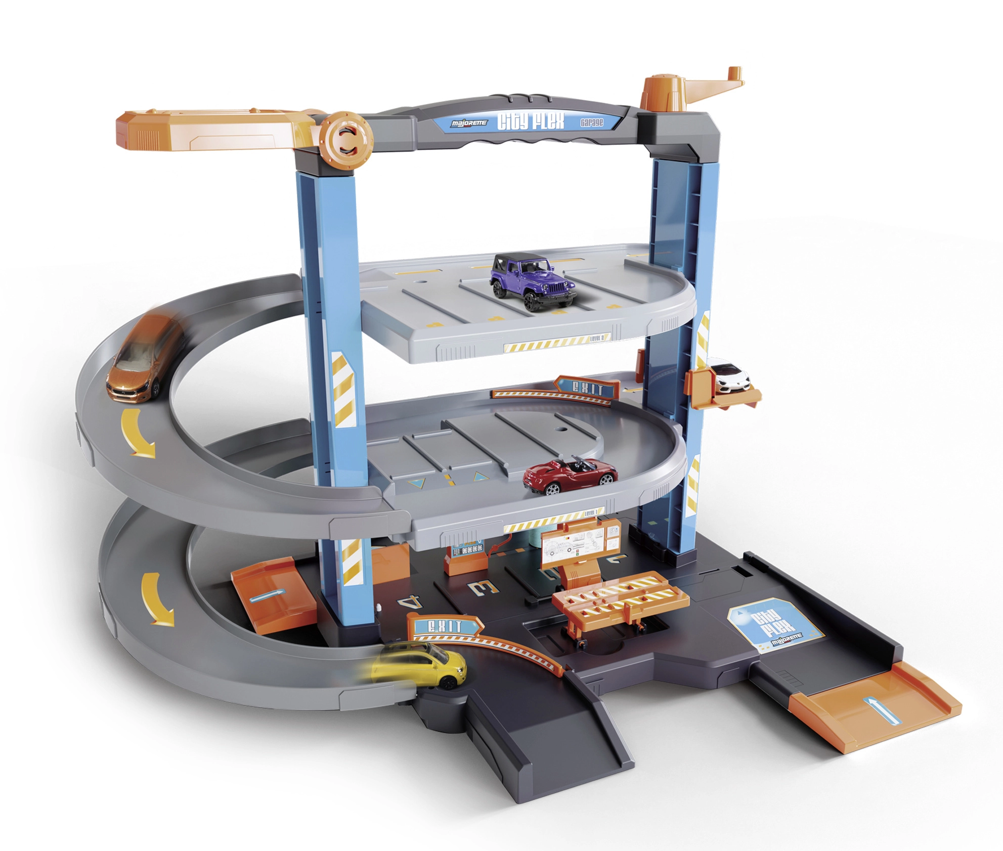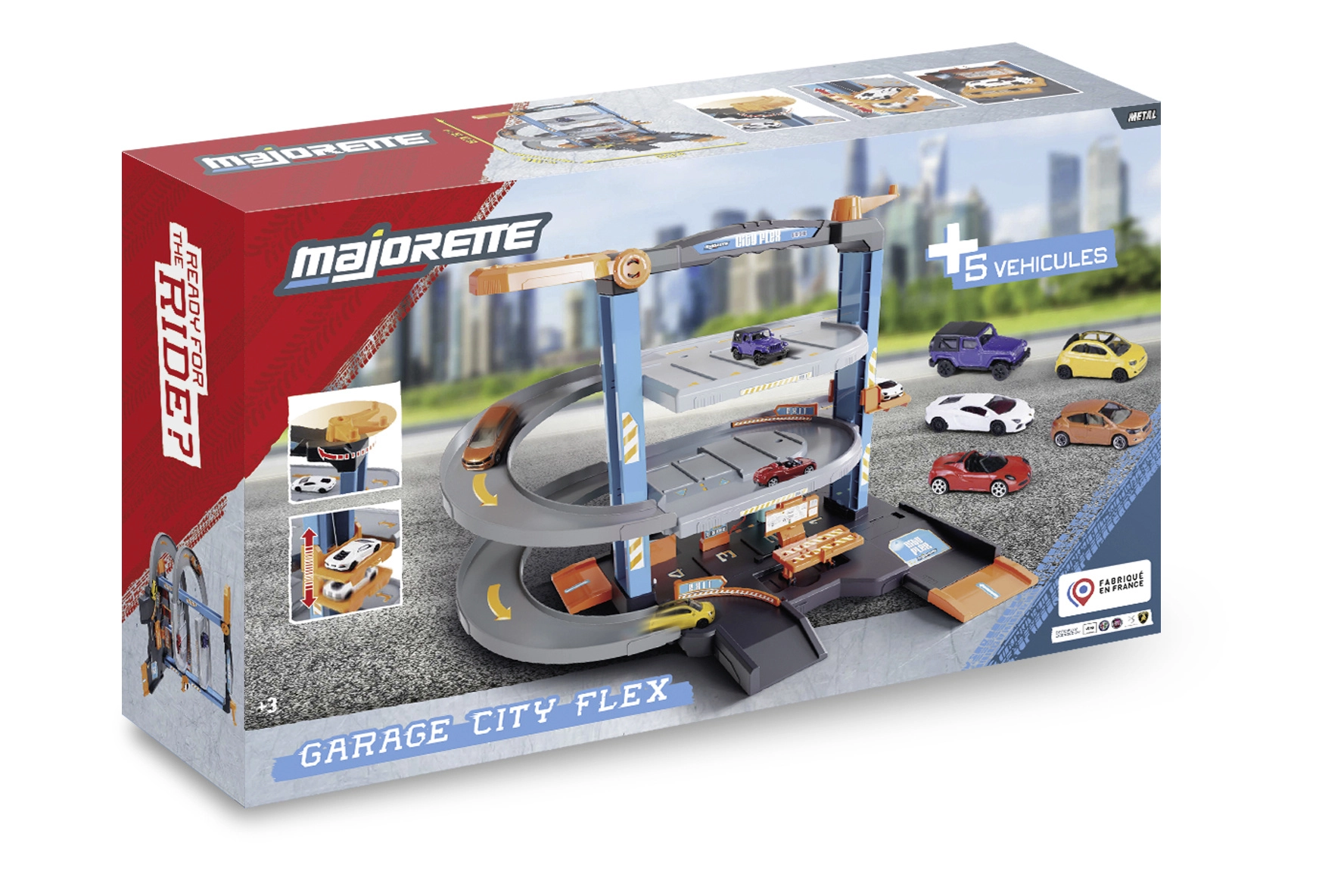Fedezd fel a több szintes szórakozást a Majorette City Flex garázsszettel. Háromszintes parkoló lifttel, szervizzel, benzinkúttal és öt fém kisautóval végtelen órákon át tartó játékhoz. Széles rámpák, akár 8 járműnek hely, valamint élethű utcaimitáció garantálja az akciódús és kreatív játékot már 3 éves kortól.