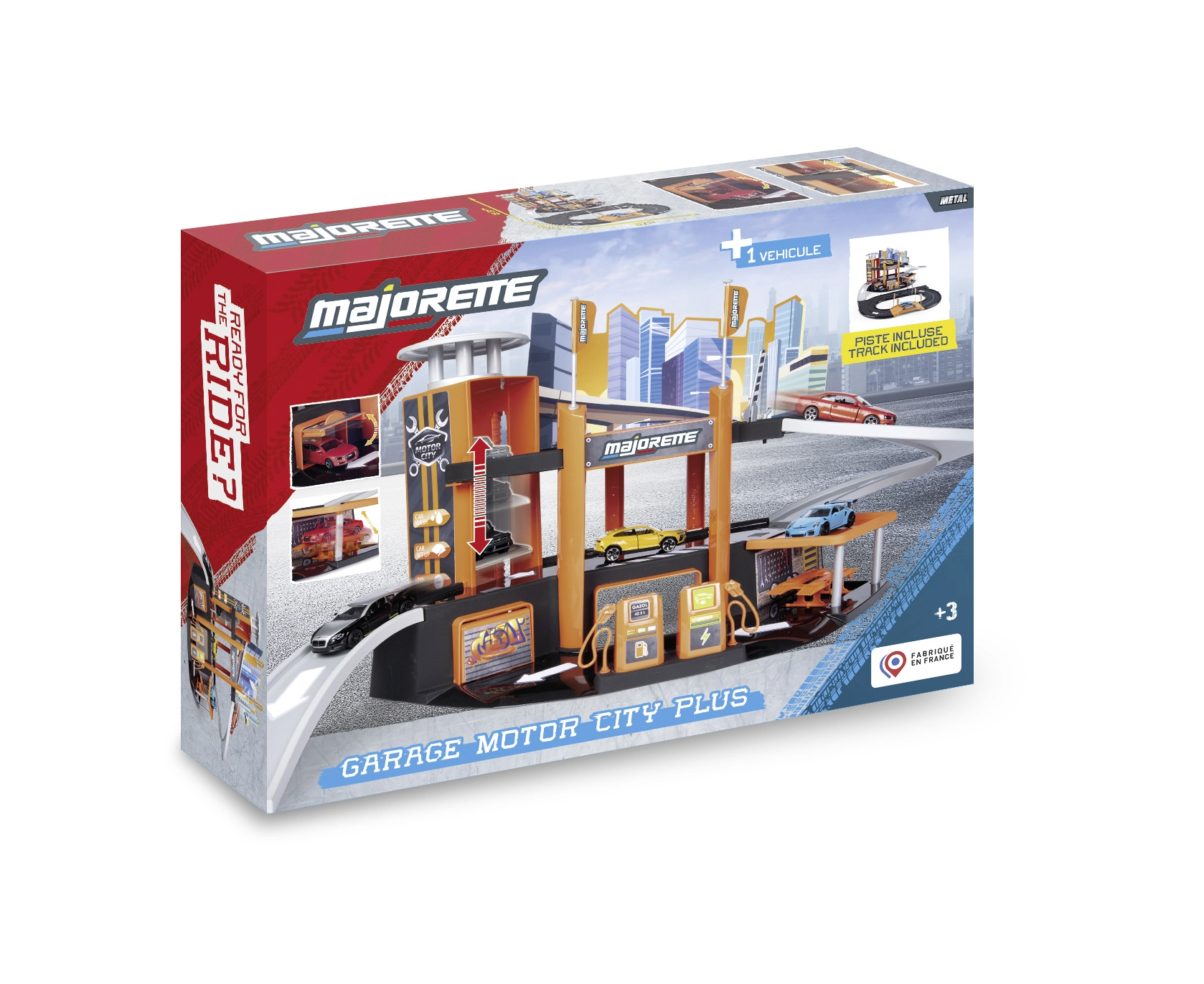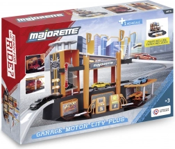 Maximális szórakozás a Motor City Plus garázsszettel a MAJORETTE márkától – 3 szintes parkoló hosszú lejtővel, hurkokkal, lifttel, szervizzel és benzinkúttal, amely „töltés” funkciót is kínál elektromos autókhoz. A csomag tartalmaz egy városi kisautót az azonnali játékhoz.