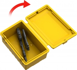 A készletben két emberi figura található blasterrel, eszközökkel és sárga ládával – ideális szerepjátékhoz és bevetésekhez.