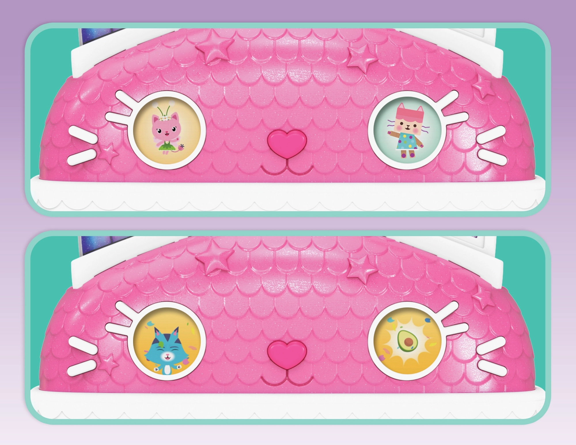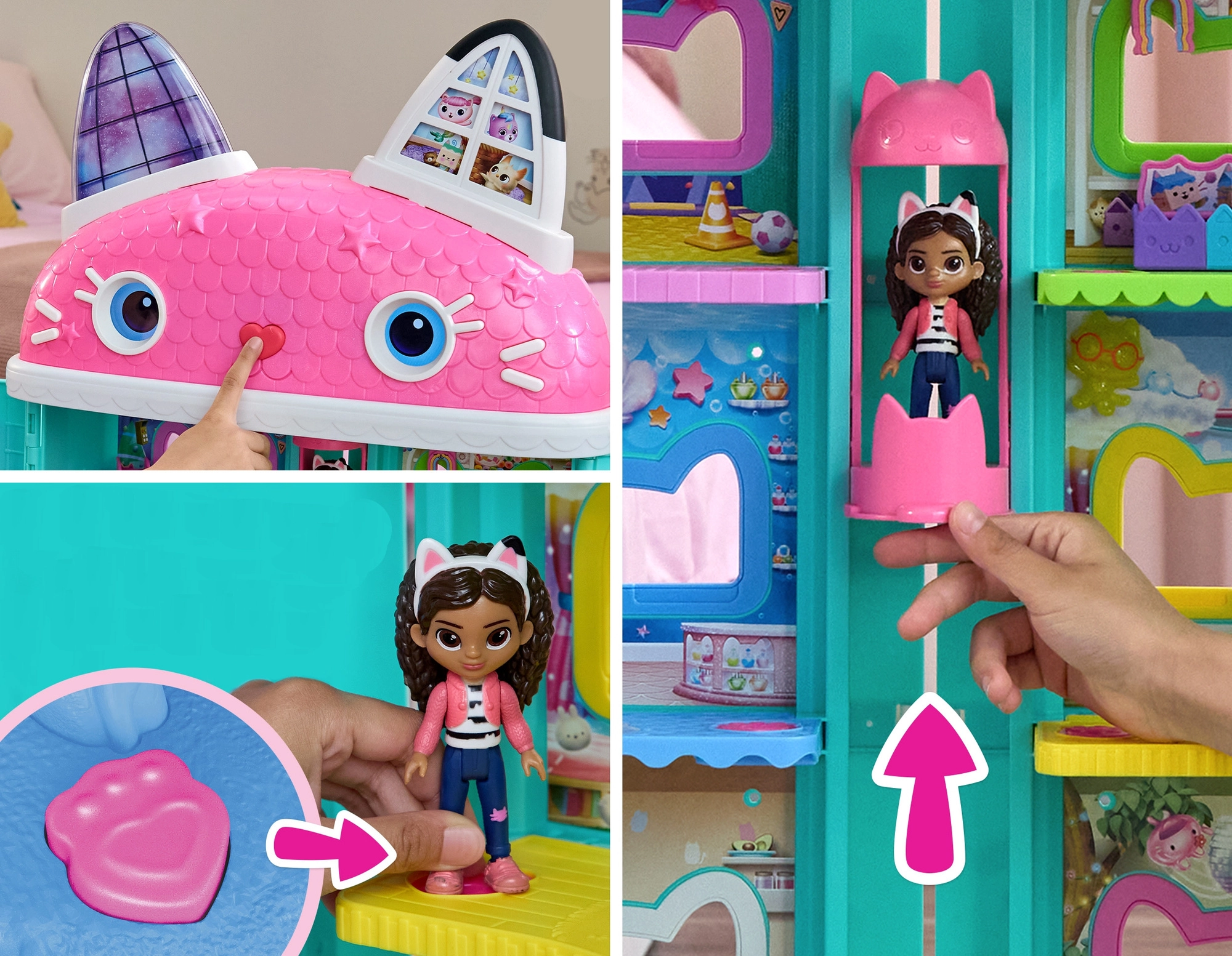 A tetőn lévő animált LCD szemek mimikát váltanak és érzelmekkel töltik meg a játékot. A gyerekek 6 játékmódot élvezhetnek, köztük a „A nap macskája” és a „Keresd meg” játékokat. A csomagban Gabi baba, bútorok, kiegészítők, cserélhető szemsorok, matricák és meglepetések is vannak a csomagocskákban. A ház kompatibilis a GABBY világának további játékaival (egyesek külön kaphatók).