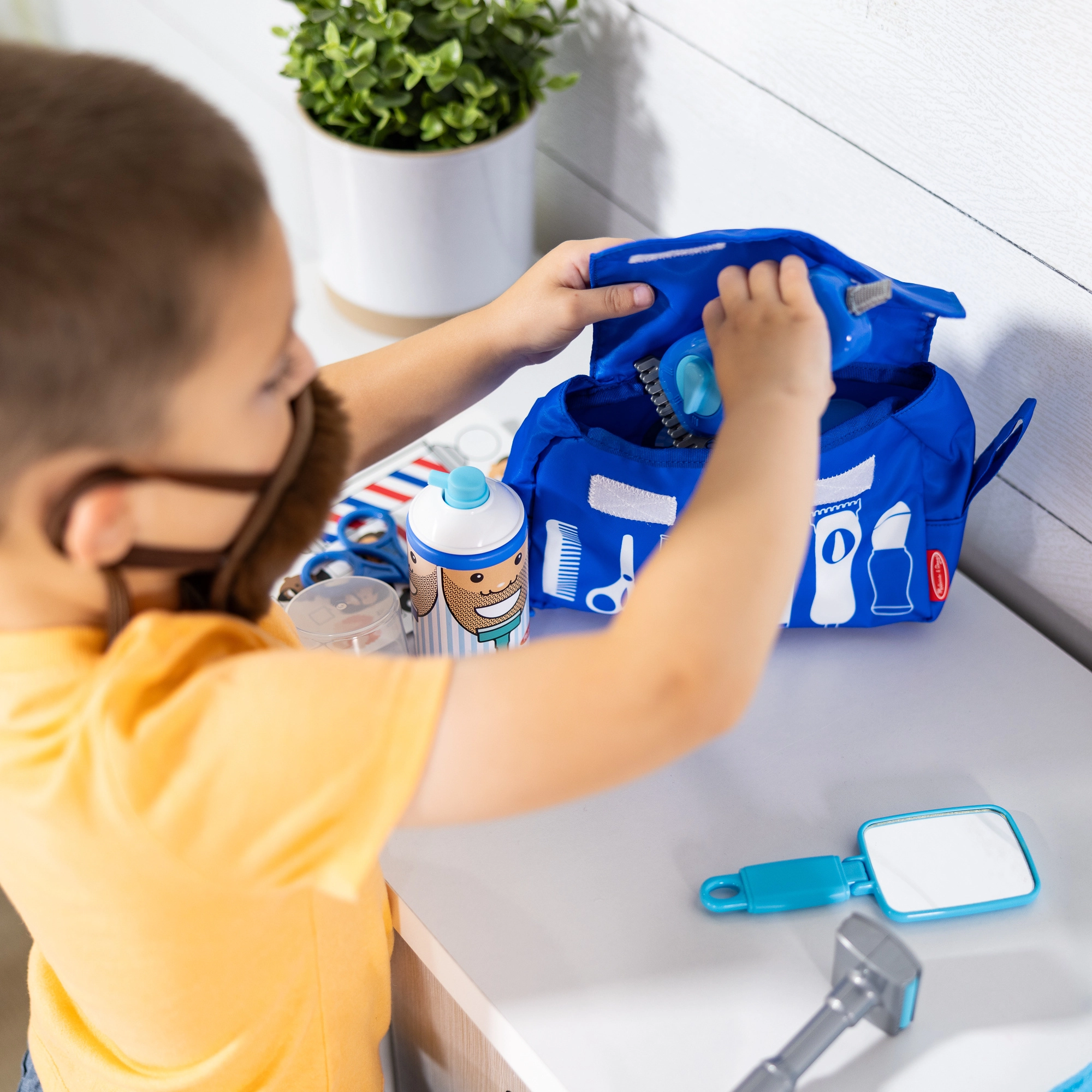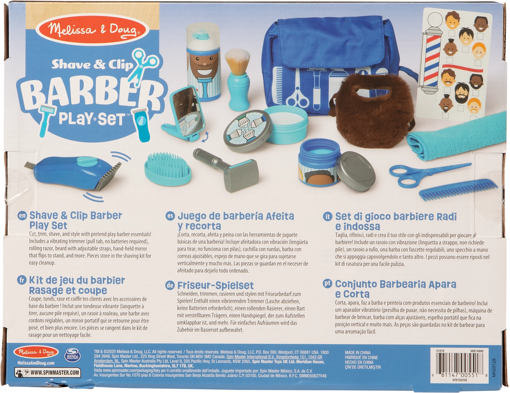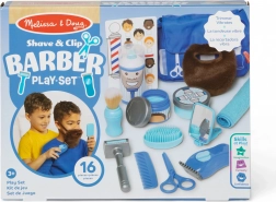 Merítsd a gyerekeket a fantázia világába a komplett borbélyszettel a kis stylistoknak. A gazdag, kék kiegészítőkből álló készlet valósághű eszközöket kínál a hajvágás, borotválás és frizuraigazítás élethű utánzásához. A csomag része egy puha, felcsatolható szakáll is a még szórakoztatóbb szerepjátékhoz.