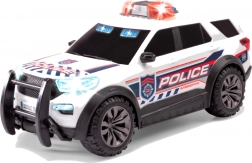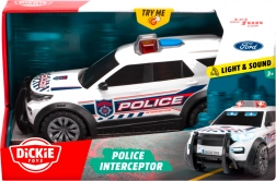 A Dickie Toys márkájú FORD INTERCEPTOR gyermek rendőrautó fény- és hangeffektekkel kínál valósághű, akciódús szórakozást. A fehér karosszéria markáns részletekkel, nagy műanyag kerekekkel az előrehaladáshoz, valamint villogó fényhíddal és szirénával teremti meg a rendőri bevetés hiteles hangulatát.