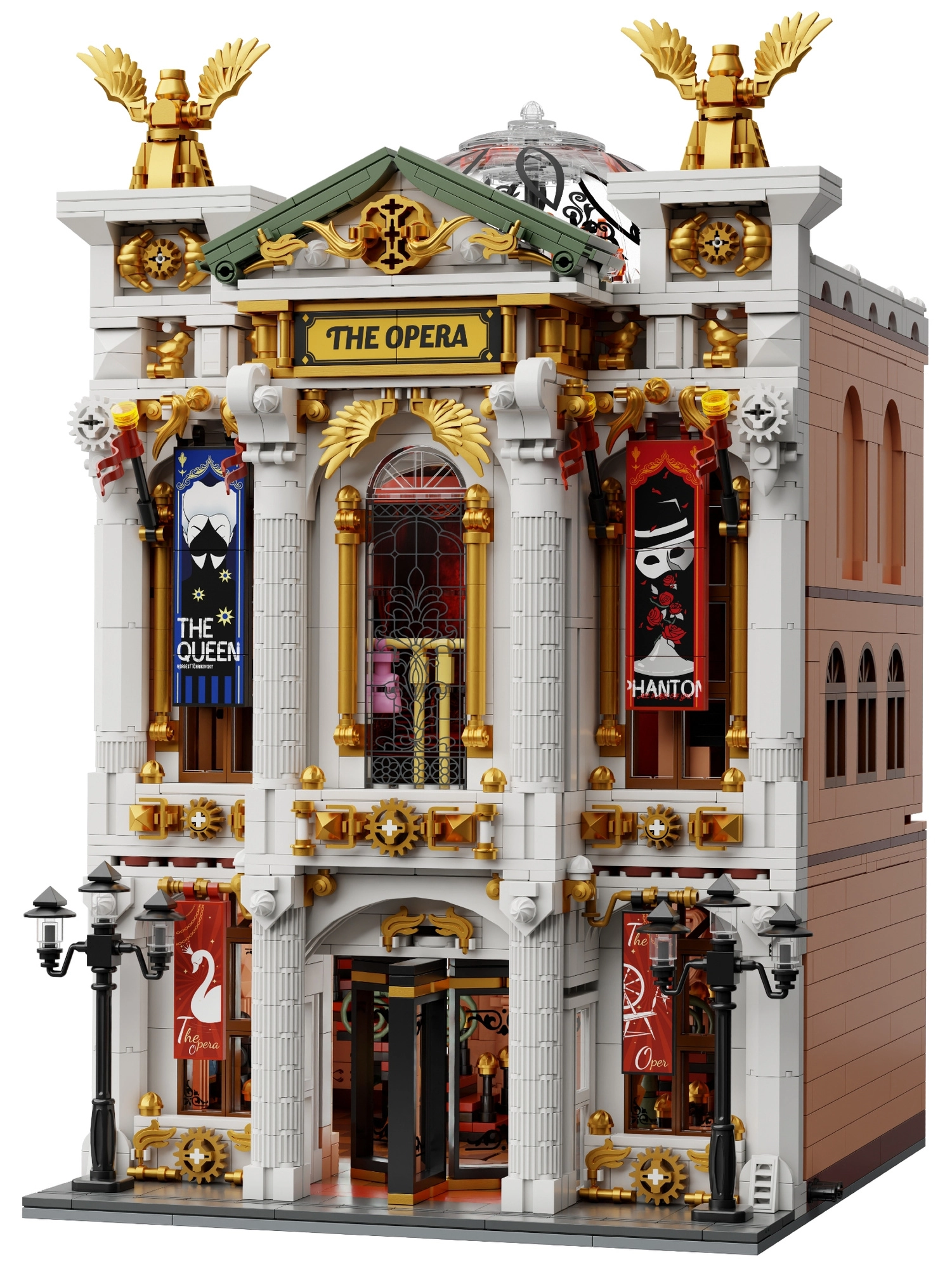 Ez a gyűjtői építőkészlet a nagyívű opera hangulatát hozza el az asztalára. A aranyozott részletekkel, oszlopokkal, zászlókkal és utcai lámpákkal díszített homlokzat első pillantásra magával ragad, míg a belső tér és a bejárati rész saját történetek megrendezésére ösztönöz.