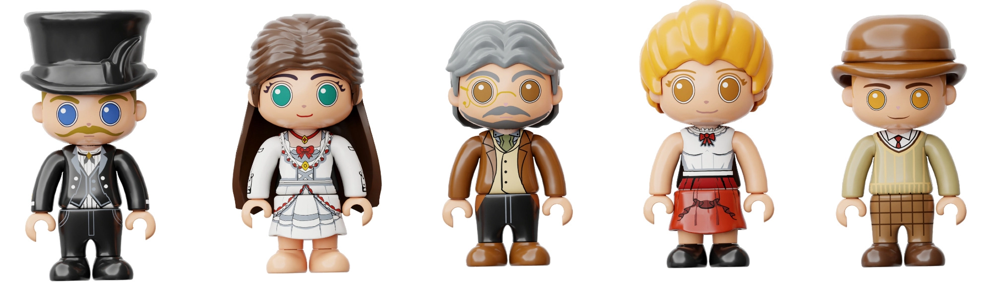 A készlet több korhű jelmezes figurát tartalmaz – ideális az operai környezet történeteinek megjelenítéséhez.