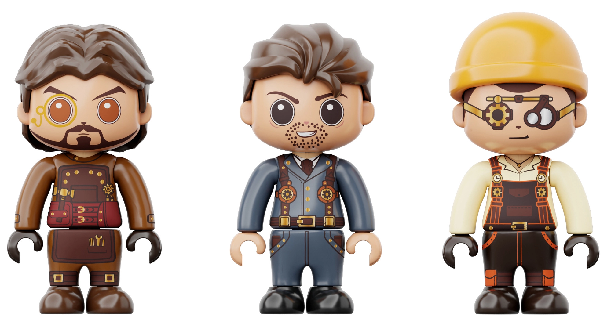 A készletben stilizált minifigurák találhatók: egy feltaláló, egy kovács és egy titokzatos vendég – tökéletesek saját kalandok kitalálásához.