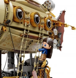 Az oldalsó propellerek forognak, a kötelek és fogaskerekek kiemelik az autentikus steampunk megjelenést. A modell játék közben és a polcon is lenyűgöző.