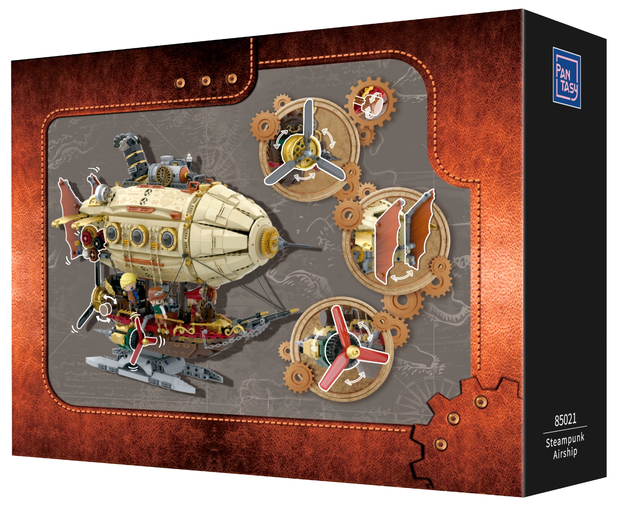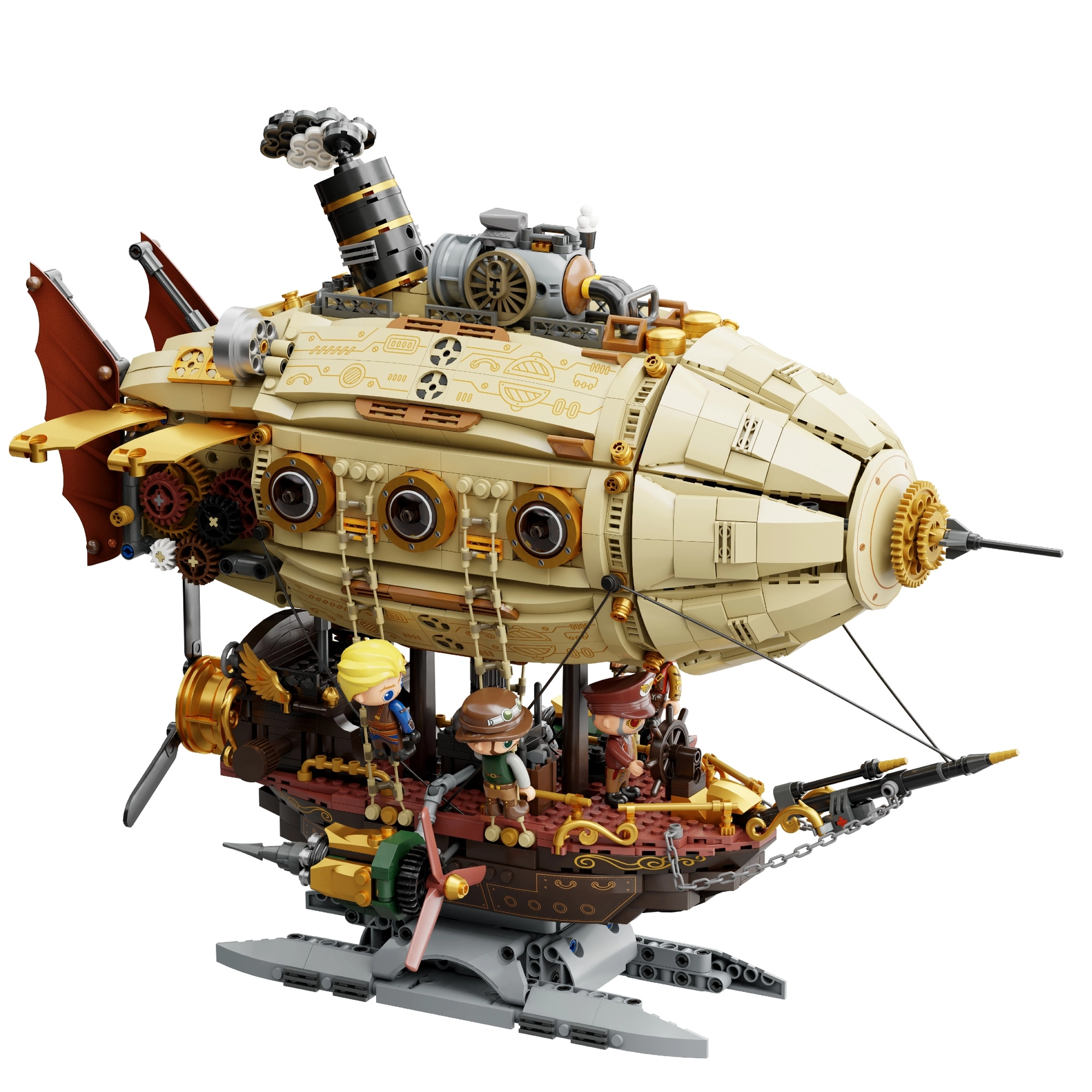 Ez a steampunk léghajó az elegáns retro esztétikát egyedi mechanikus részletekkel ötvözi. Összeépítés után kiemelkedik a nagy ballon, az oldalsó propellerek, a kötélzet és a fogaskerekek, amelyek autentikus megjelenést és remek játékélményt adnak. A mozgó alkatrészeknek és az átgondolt felépítésnek köszönhetően az építést és a kiállítást is élvezni fogod.