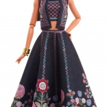 Ezt a kivételes babát a híres divattervezővel, ANITA DONGRE-val együttműködésben alkották meg, aki etikus divatjáról és az indiai vidéki kézműves nők támogatásáról ismert. A styling a „éjféli virágok” motívumból merít, és intenzív színeket, finom mintákat és a Barbie Signature kollekcióra jellemző, elsőrangú kivitelezést ötvöz.