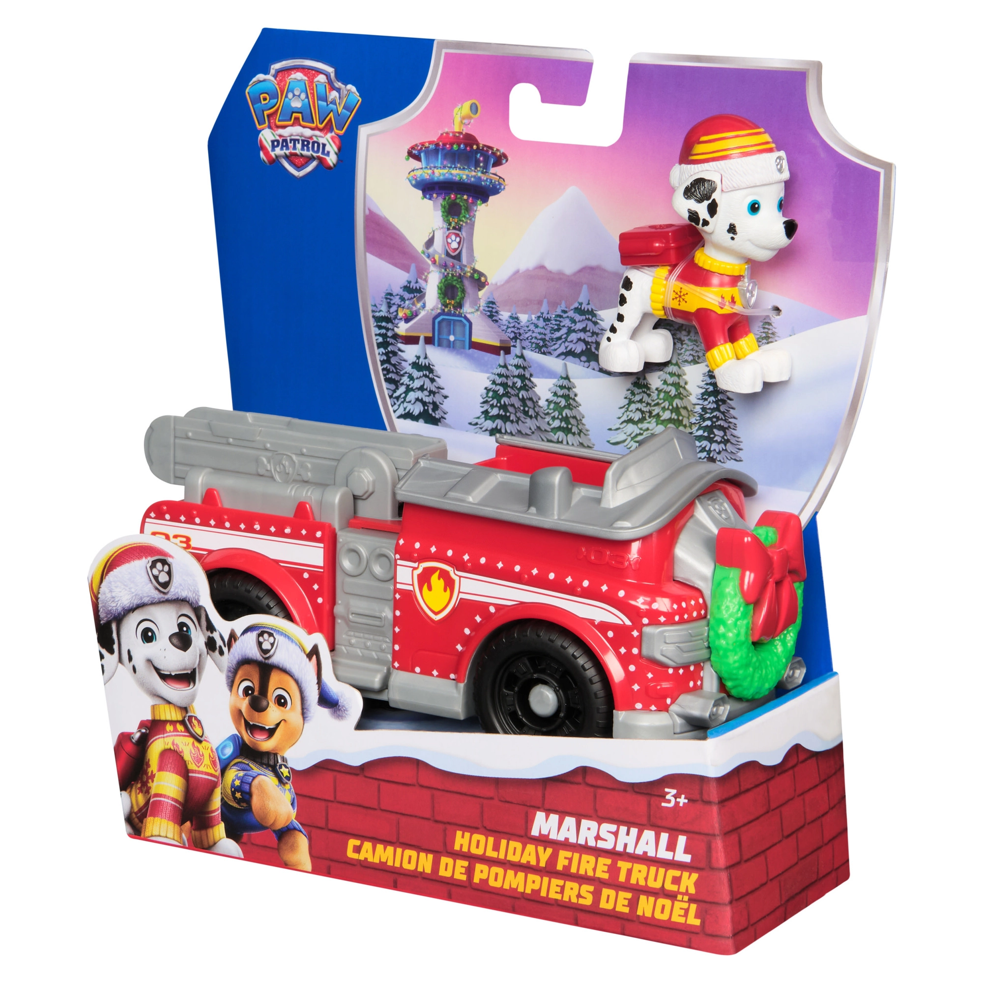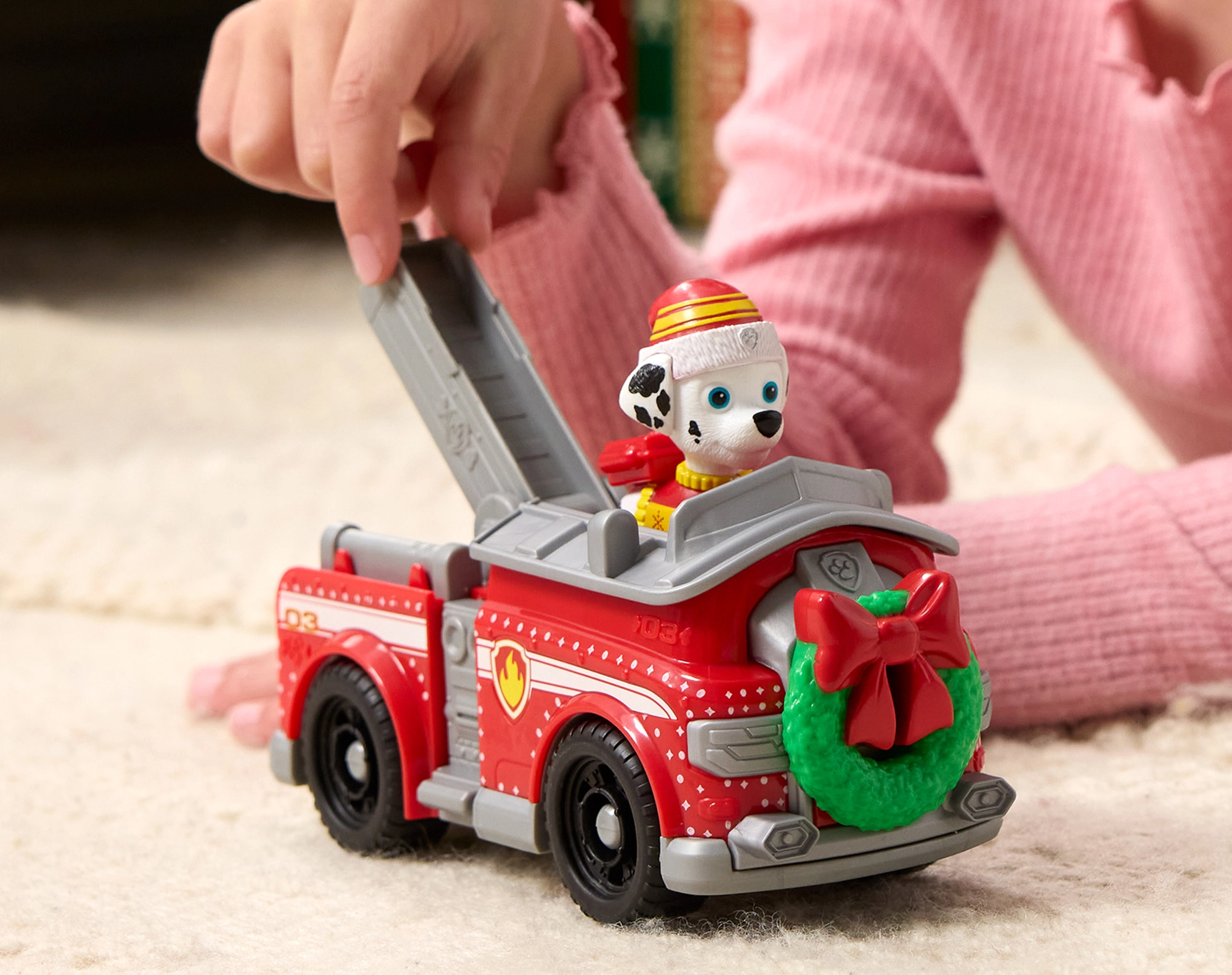 Ez a hivatalos Spin Master szett a közkedvelt Marshall kutyust hozza el téli öltözékben, valamint egy stílusos tűzoltóautót koszorúval az elején. A gyerekek beültethetik a figurát a fülkébe, és már indulhatnak is a kalandos küldetésekre. A guruló kerekeknek és a lehajtható létrának köszönhetően a játék gördülékeny és tele van akcióval.