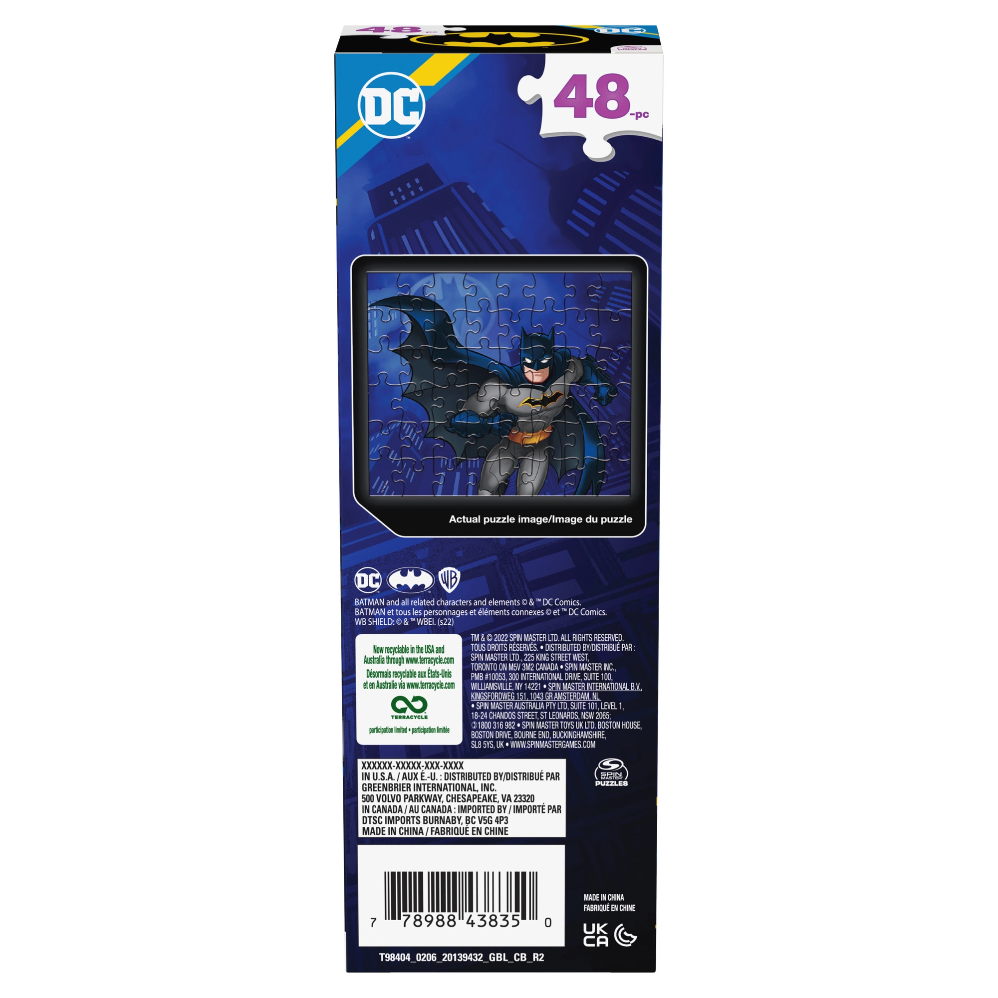 Gyermek kirakó BATMAN motívummal a Spin Master márkától, 48 darabbal, amely összeállítva 26,2 × 23,1 cm méretű képet alkot. Remek szórakozás a koncentráció, a türelem és a logikus gondolkodás fejlesztésére – ideális egyedi ajándék a DC Comics világának kis rajongói számára.