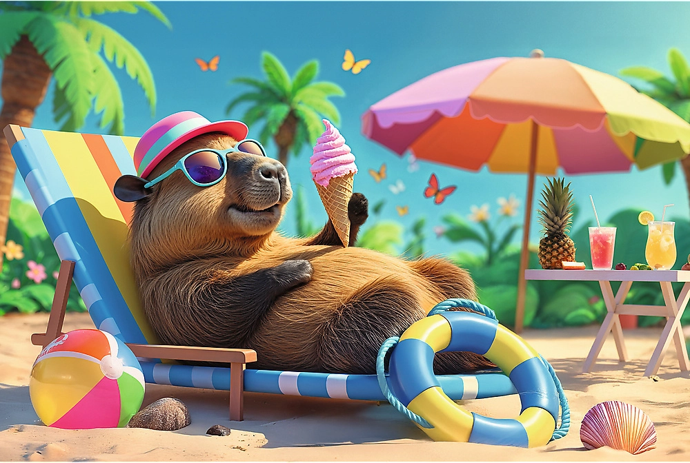 - Kapibara napozóágyon