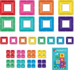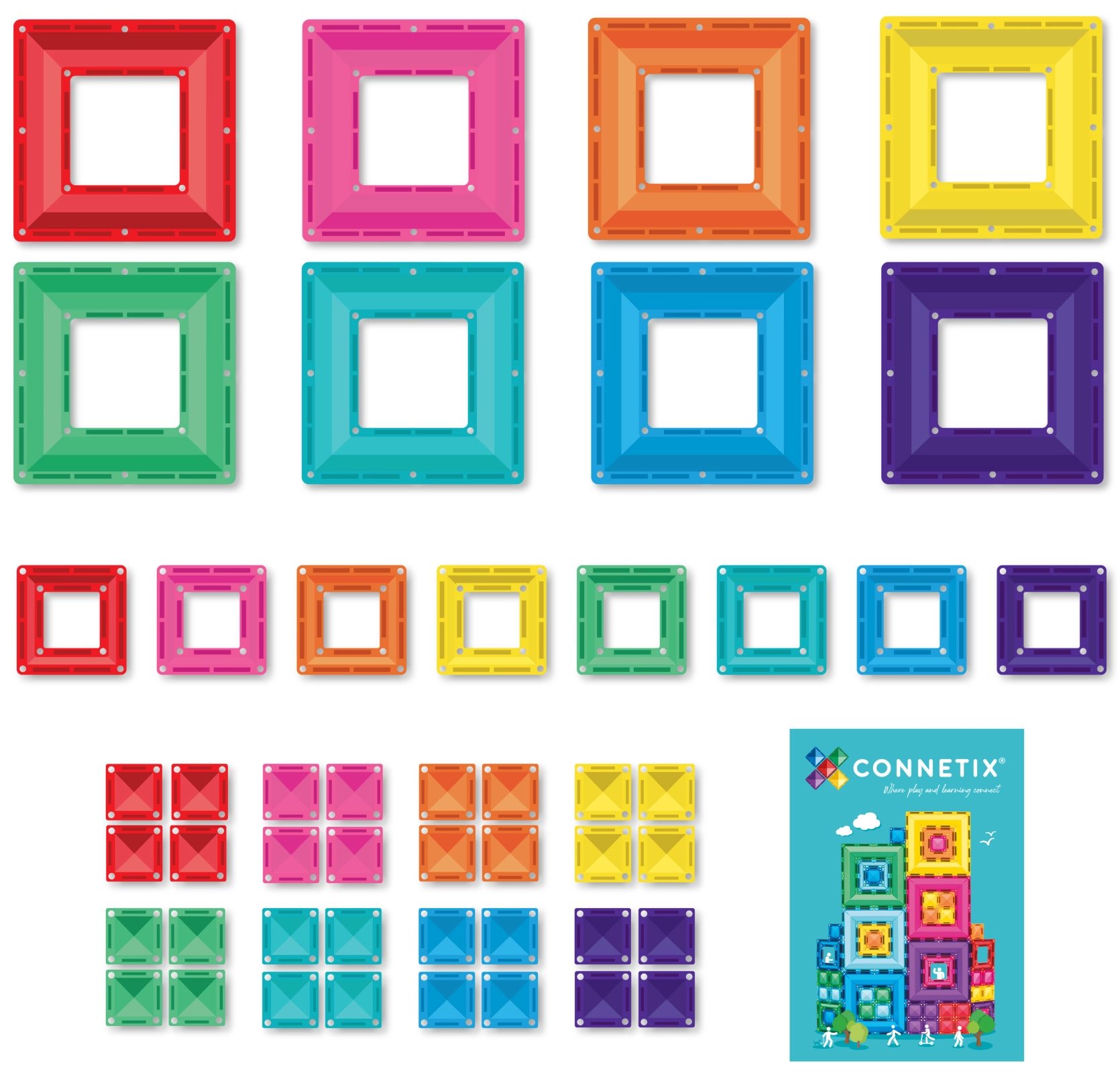 A szett tartalmaz portál kereteket a karakteres építészeti elemekhez, valamint praktikus kis négyzeteket a részletgazdag építéshez. Kiváló otthoni játékhoz, óvodákba, Montessori tevékenységekhez és érzékszervi terápiához is. A darabok kompatibilisek más CONNETIX készletekkel, így a kollekció fokozatosan bővíthető.