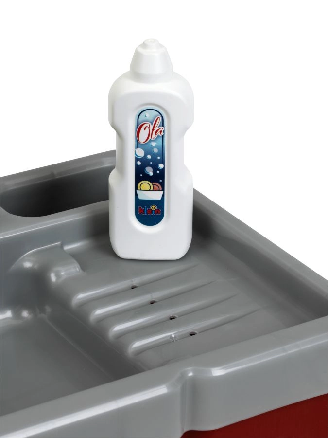 Elég megtölteni a tartályt és elfordítani a szabályzót – a víz úgy folyik, mint egy igazi mosogatónál. A gyerekek biztonságosan kipróbálhatják a tányérok és evőeszközök mosását.