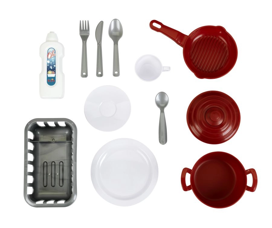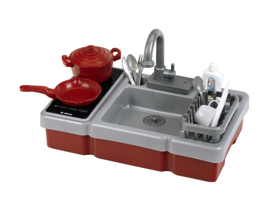 Ez a kidolgozott szett lehetővé teszi, hogy a gyerekek biztonságosan utánozzák a mindennapi konyhai tevékenységeket. A körforgásos vízáramlással működő csapnak és a fény- és hanghatású érintéses indukciós főzőlapnak köszönhetően a játék maximálisan élethű és szórakoztató. Nem hiányzik a csepegtető, a „mosogatószer” helye, valamint a bőséges tartozékkészlet a tálaláshoz és főzéshez.