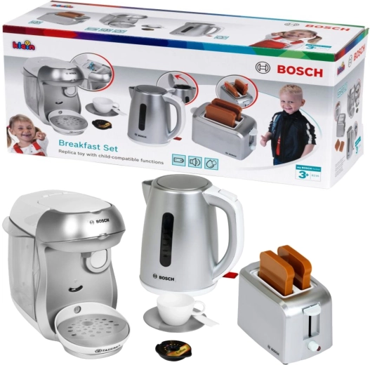 A szett része továbbá a kompakt, szürke kenyérpirító automatikus felugrással két toast számára, emelő mechanizmussal és forgó szabályzóval (imitált szabályozás). A készletet egy gyerek elektromos vízforraló egészíti ki felnyitható fedéllel és kapcsolóval a még valósághűbb játékért.