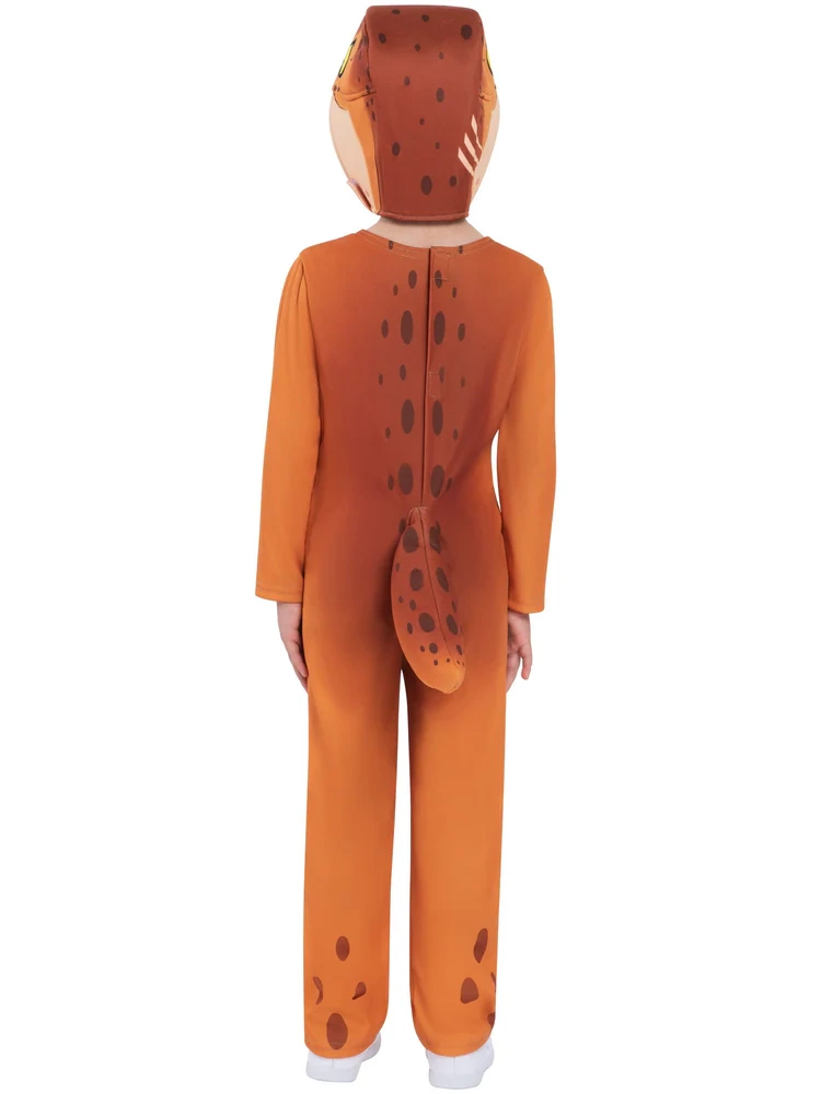 Cuki és kényelmes gyerek jelmez, a JURASSIC WORLD T‑Rex a kis dinoszaurusz‑rajongóknak 3–4 éves korban. Egyberészes kezeslábas dinoszaurusz formájú kapucnival, rögzített farokkal és foltmintás nyomattal a könnyű felvétel és a maximális kényelem érdekében farsangra, Halloweenre és mindennapi beöltözéshez.