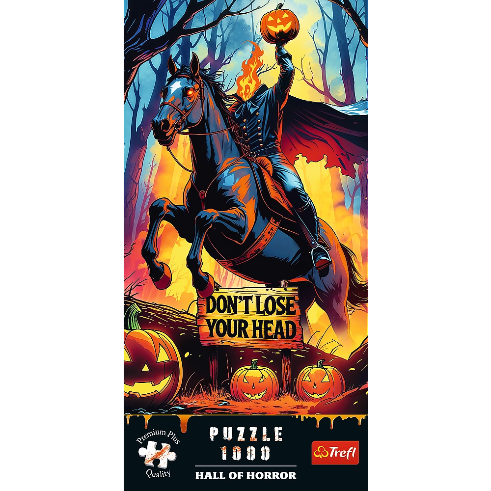 Élvezze a minőségi kirakózást a TRELF puzzle-ökkel, a Hall of Horror – Fej nélküli lovas motívummal. A csomag 1000 darabot tartalmaz erős, vastag kartonból, pontos kivágásokkal a sima illeszkedésért. A termék FSC tanúsítvánnyal rendelkezik, a csomagolás műanyag részei pedig komposztálhatók és biológiailag lebomlók.