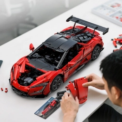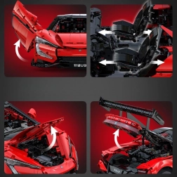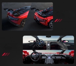 Gondosan kidolgozott piros karosszéria nyomtatott részletekkel, sport felnik és aerodinamikai szárny. Az összeszerelt méret kb. 60,5 × 29,5 × 16 cm, amely bármely gyűjteményben jól mutat.