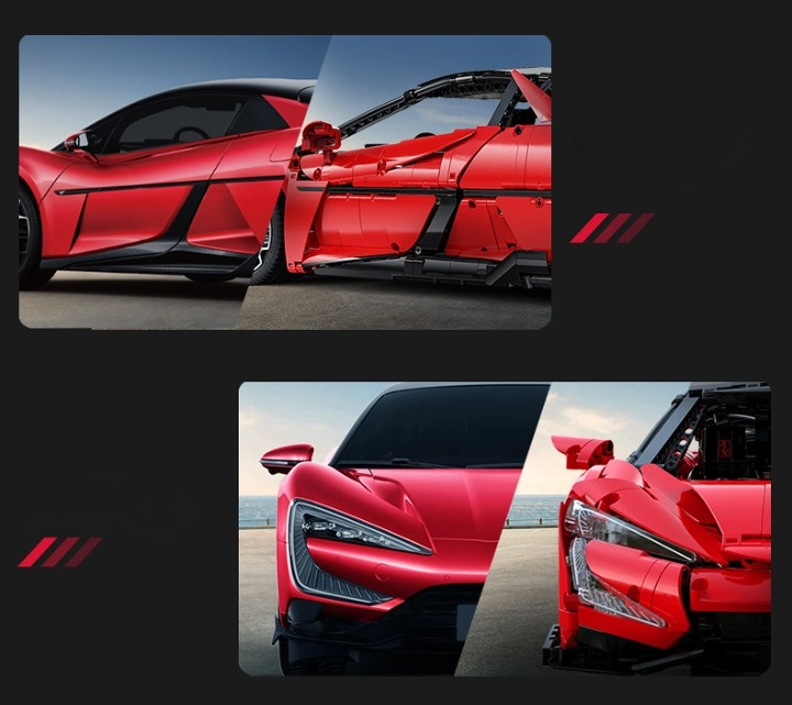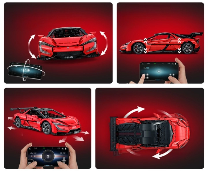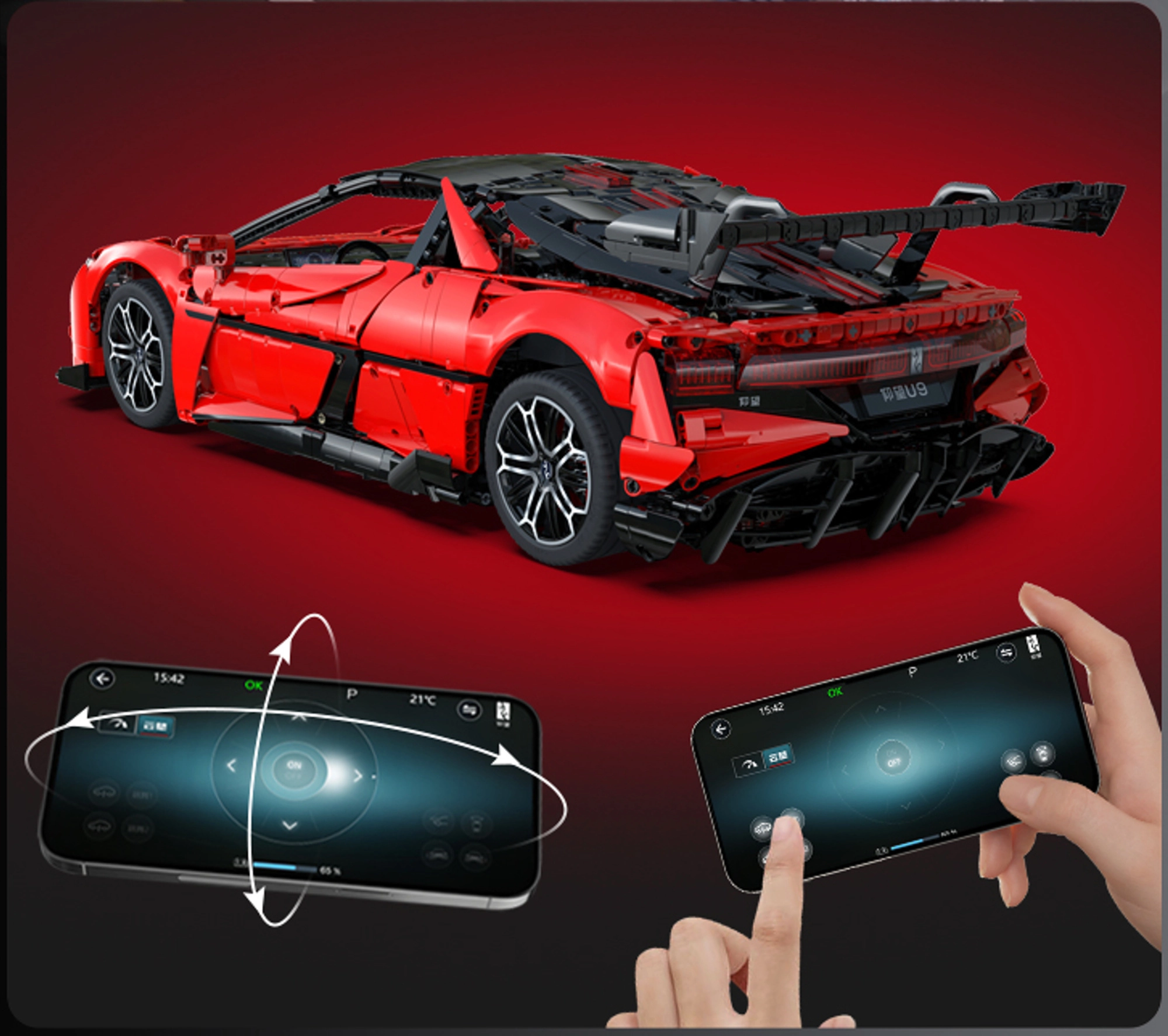 Éld át a precíz építés és az okos szórakozás kombinációját. A hivatalosan licencelt BYD YANGWANG U9 modell 1:8 méretarányban összeszerelve hozzávetőleg 60,5 × 29,5 × 16 cm, hűen visszaadva az aerodinamikus vonalakat, a nyomtatott részletekkel díszített piros karosszériát és a sport futóművet. A Bluetooth alkalmazással vezérelve a modell akár 3,8 km/h sebességre is képes, előre/hátra haladással és kanyarodással.
