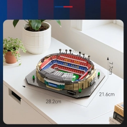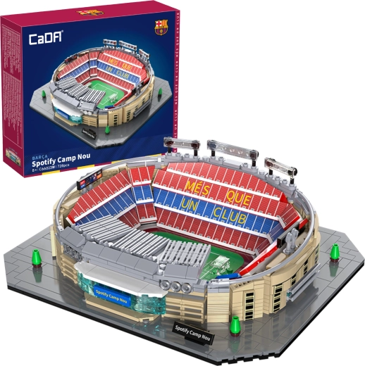 A CaDA SPOTIFY CAMP NOU stadion részletgazdag modellje autentikus, színes lelátókat kínál a „Més que un club” felirattal, világítóoszlopokat, kidolgozott homlokzatot és zöld játékteret. A FC BARCELONA licencnek köszönhetően precíz részletek és más készletekkel kompatibilis, minőségi elemek várják.
