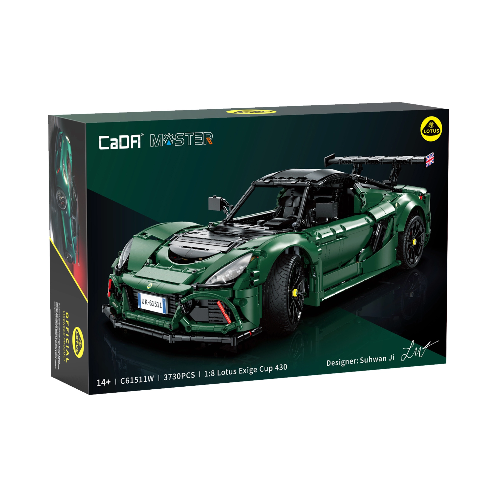 Építse meg az ikonikus LOTUS Exige Cup 430 autót 1:8 méretarányban 3730 elemből. A CaDA Master sorozat készlete nyitható ajtókat, motorháztetőt, csomagtartót és tetőt, valósághűen kidolgozott belsőt, működő kormányzást és aktív felfüggesztést kínál. A sötétzöld karosszéria és a precíz részletek remek gyűjtői modellt és kihívást jelentenek a tapasztalt építőknek.