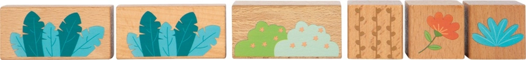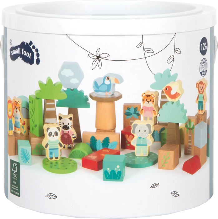 100% FSC tanúsított fából készül, sima felülettel és kellemes színpalettával, amely harmonizál az anyag természetes megjelenésével. Az építőkészlet ideális a kéz–szem koordináció, a türelem és a koncentráció fejlesztésére, és remekül kiegészíti a dzsungel témájú játéksorozat egyéb darabjait.