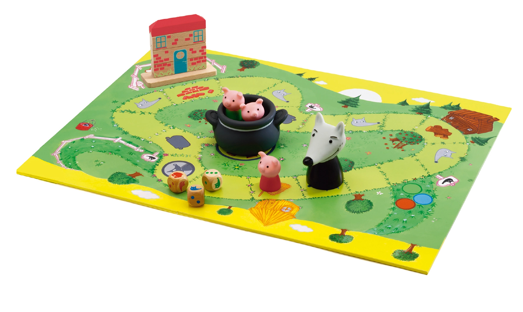 Lépjetek be a három kismalac meséjébe, és segítsetek nekik biztonságos téglaházat építeni, mielőtt elkapná őket a farkas. A játékosok nem egymás ellen játszanak, hanem együtt – minden lépés számít, és eldönti, sikerül-e a malacoknak megmenekülni. A játék az érthető szabályoknak és a rövid játékidőnek köszönhetően ideális a kisebb gyerekek számára.