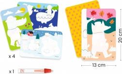 A DJECO Vizes kifestő – 4 évszak örömteli festést nyújt gyerekeknek festékek és pacák nélkül. A vízzel feltöltött tollal a lapokon fokozatosan feltárulnak a rejtett részletek – száradás után ismét eltűnnek, így a móka újra kezdődhet. A tevékenység fejleszti a finommotorikát, a koncentrációt és a képzelőerőt.